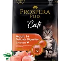 Prospera Plus Adult 1+ Delicate Digestion on superpremium kvaliteediga kuivtoit täiskasvanud kassidele (vanusest vähemalt 1 aasta), mis on välja töötatud spetsiaalselt kassidele, kellel esineb tundlik seedimine.